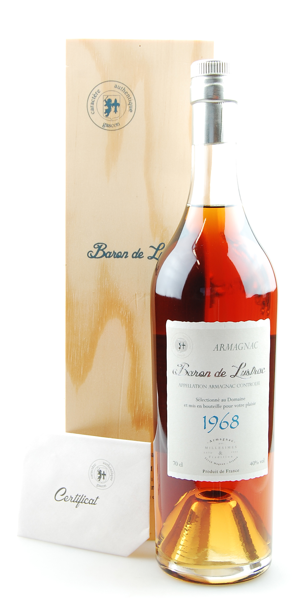 Produktinformationen "Armagnac 1968 Baron de Lustrac 0,7l in Holzkiste"