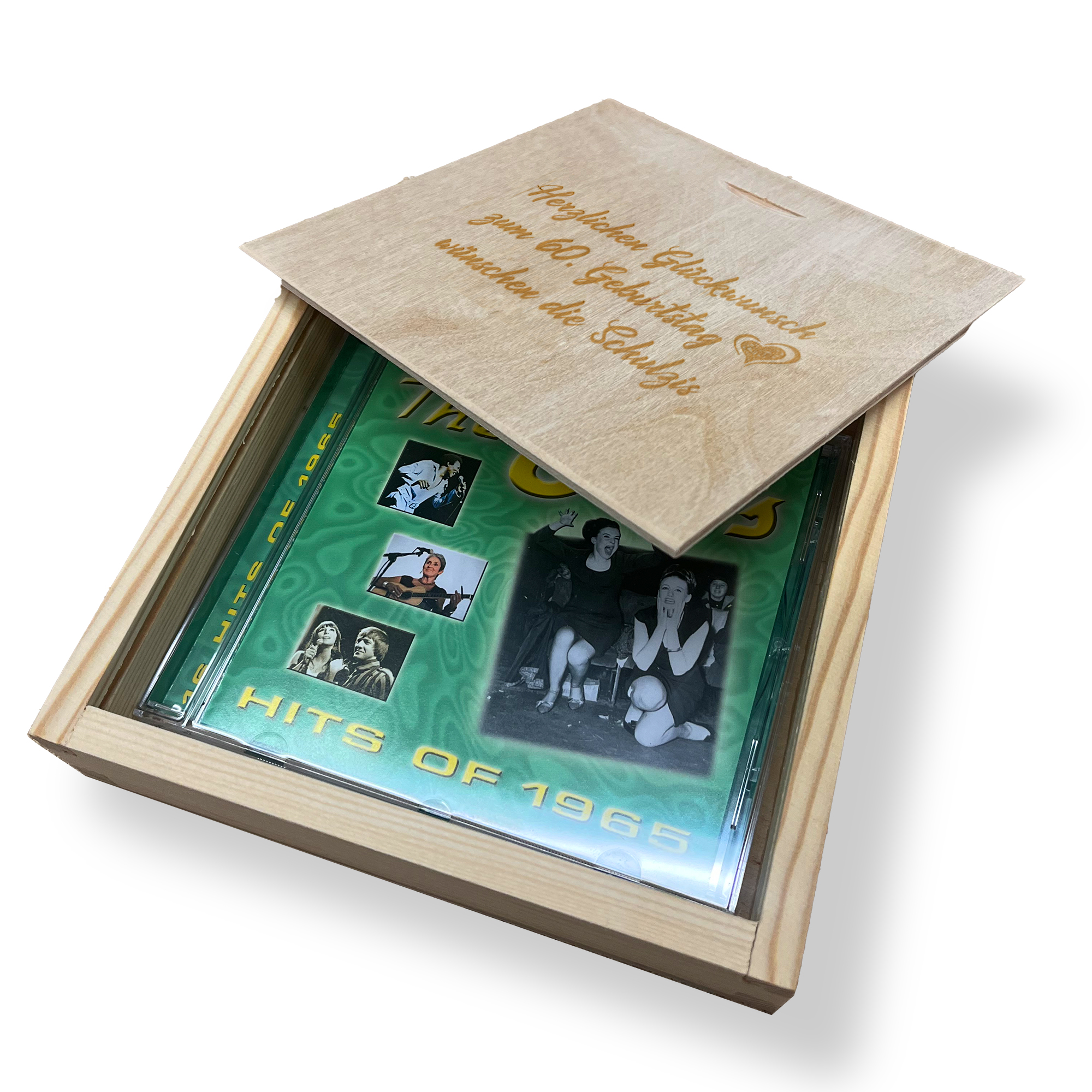 CD 1965 Musik Hits in Holzkiste mit Gravur