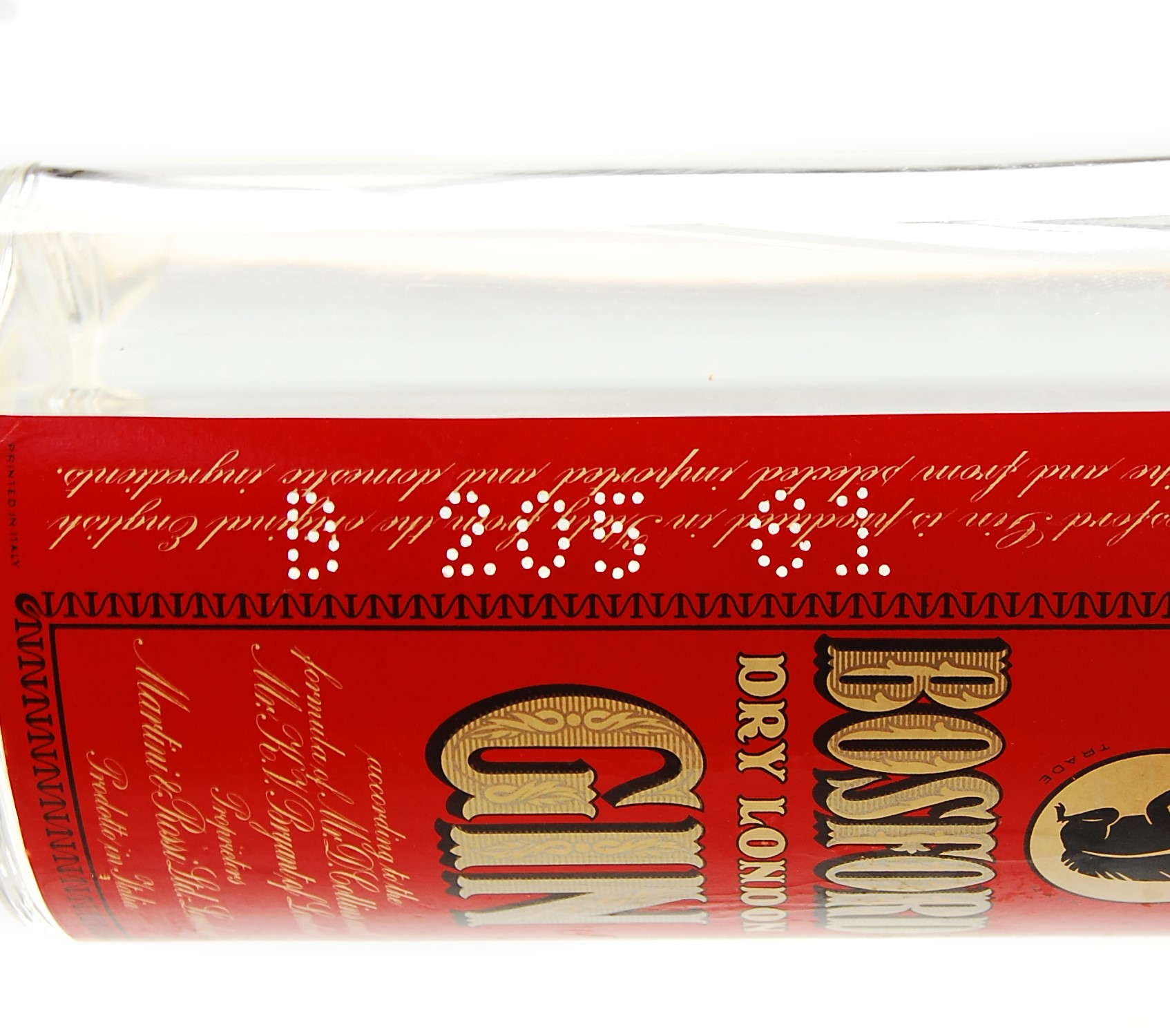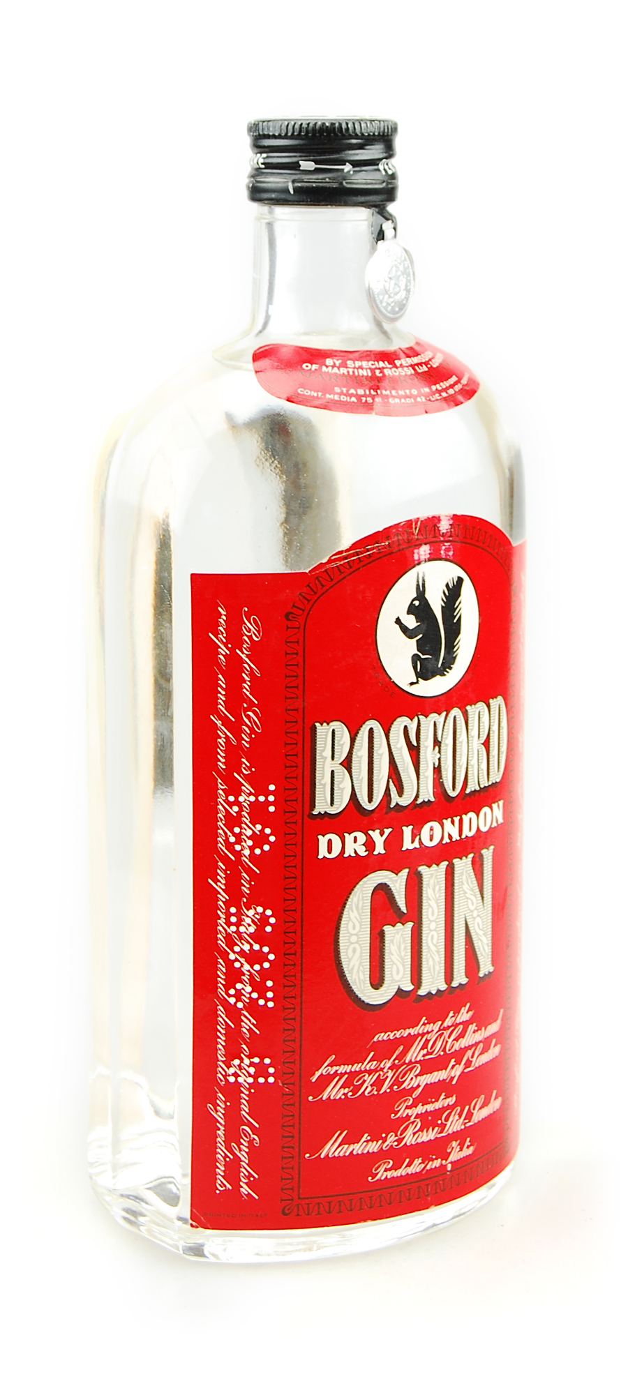 Der damals weltberühmte Bosford Extra Dry Gin wird nach einem typischen, alten und klassischen englischen Rezept produziert, mit einer weltweit anerkannten Qualitätsgarantie. Der Bosford Dry Gin ist nicht nur eine historische Marke, sondern vor allem eine in den 60er bis 80er Jahren weltberühmte und überall beliebte Bar-Marke, die in keiner gut sortierten Bar fehlen durfte und sich vorallem durch eine sehr gute Qualität und einen moderaten Preis auszeichgezeichnet hat. Dieser Dry Gin mit gestanzten Etikett mit der Jahrszahl 1961 wurde nach dem Rezept von Mr. Bryants aus London produziert und von der renommierten italienischen Hersteller-Firma Martini & Rossi in Flaschen abgefüllt.