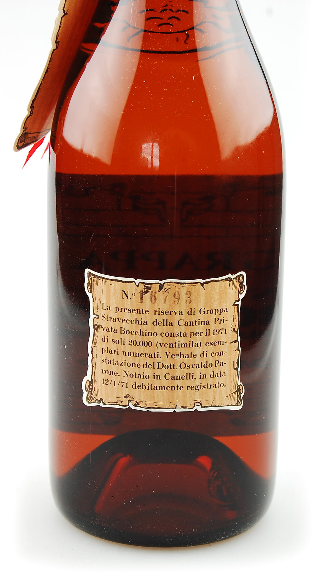 Ein sensationeller auf nur 20.000 Flaschen limitierter und nummerierter Jahrgangsgrappa 1971 Grappa della Privata Bocchino aus dem im Jahre 1898 gegründeten Familienunternehmen Bocchino.