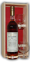 Mitten im Herzen des Bas-Armagnac liegt das Familienunternehmen De Castelfort. Dort werden mit dem uralten Know-How einer großen und traditionellen Erzeugerfamilie die zu den besten zählenden Jahrgangs-Armagnacs destilliert. Das Haus De Castelfort ist seit Generationen ein führender Hersteller von Armagnac. Besonders stolz ist dieses traditionsreiche Familienunternehmen auf seinen Bas-Armagnac. Dieser einzigartige Armagnac präsentiert sich als besonders zarte, glatt und reich aromatische Art. Ein Eau-de-vie mit einem feinen Bouquet und einem einzigartigen Geschmack von Pflaumen und Vanille. Ein reichhaltiger, vergegenwärtigter und eleganter Weinbrand. Im Unterschied zu Cognac wird der Armagnac nur einmal destilliert und anschließend für 3 - 20 Jahren in den typischen, schwarzen Eichenholzfässern gelagert. Hier entwickelt sich auch sein dunkler, bernsteinfarbener Glanz, sowie das typische Aroma von Backpflaumen, Vanille, Süßholz und vielem mehr. In der Regel hat er einen stärkeren Geschmack als der Cognac und wird daher als sehr edel und geschmeidig bezeichnet. Jahrgangs-Armagnac darf sich nur dieser Armagnac nennen, der ausschließlich die Trauben eines Jahrgangs enthält. Sogar der jährliche Flüssigkeitsverlust, der "Part der Engel" (Anteil der Engel, La part des anges) wird mit den Bränden desselben Jahrgangs aufgefüllt. Die perfekte Geschenkidee für den Geburtstag, den Hochzeitstag oder ein ganz besonderes Jubiläum. Lieferung erfolgt inkl. Holzkiste.