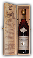Es gibt nur noch einen Weinbrand in der Welt, der einen Vergleich mit seinem berühmten Gegenstück, dem Cognac aushält, und auch dieser kommt ebenfalls aus Westfrankreich und ist cirka 130 km von der Charente entfernt. Die beiden Brände sind allerdings in auf die Trauben, das Terroir, die Destillation, die Mischung, die Aromen, die Texturen und die Geschmacksrichtungen komplett unterschiedlich. Der Armagnac ist viel älter und traditionsreicher als der Cognac und wurde bereits im Jahr 1461 erstmals urkundlich erwähnt. Allerdings hat er es in dieser Zeit niemals geschafft die hohen Verkaufszahlen seines Verwandten aus der Charente zu erreichen. Die Armagnac Retorte ist ein Zwischending zwischen einer Brennblase und einem kontinuierlichen Brennapparat, eine Art Doppelboiler, in dem der Wein nur einen Brennvorgang durchläuft und ein Destillat ergibt und wesentlich schwächer ist als die meisten anderen Destillate, 53% beim Armagnac gegenüber 70% beim Destillat. Je weniger stark das Destillat ist, desto mehr Geschmacksstoffe enthält der Weinbrand. Deshalb ist ein junger Armagnac auch viel extraktreicher und blumiger als ein Cognac. Hierzu kommen dann noch Noten des schwarzen Eichenholzes jener Gegend, das sehr viele Aromastoffe enthält. In diesen Schwarzeichenfässern altern die Brände viel schneller als in den weißen Limousin-Eichenfässern des Cognacs. So ist ein Armagnac nach 10 Jahren gut ausgereift, nach 20 Jahren einfach sensationell. Armagnac zeichnet sich vor allem durch seine Samtigkeit und Weichheit aus. Er ist zugleich auch trocken, und anders als beim Cognac, wird ihm kein Zucker beigesetzt. Der Armagnac Geschmack hält sich sehr lange im Mund und im Glas. Die Region Armagnac ist in die Unterregionen Bas-Armagnac, Tenareze und Haut-Armagnac eingeteilt. Zu den ältesten Herstellerhäusern des Armagnacs gehören unter anderen die Unternehmen Lafontan, Marquis de Montesquiou, Larressingle, Caussade, Janneau, Sempe, Samelens, Malliac, Trepout, Delord und das große, bekannte und renommierte Herstellerhaus Chateau de Laubade, welches Mitte der 70er Jahre von Jean-Jacques Lesgourges nahe bei Nogaro, inmitten des Bas-Armagnac, der besten Armagnac Teilregion, gekauft worden ist und sich in den letzten 40 Jahren zu einem der international meist begehrtesten Armagnac Herstellern entwickelt hat. Jahrgangs-Armagnac Chateau de Laubade 1942: enthält ausschließlich die Trauben des Jahrgangs 1942.bottled/abgefüllt: 12.1992 Erlesene Geschenk-Idee für den Jahrgang 1942. Ein besonderer Jahrgangsarmagnac 1942 Chateau de Laubade, exklusive und phänomenale Jahrgangs-Spirituosen aus dem Jahr 1942. Jahrgangs-Armagnac Laubade, einzigartiger Armagnac Jahrgang 1942, eine Top-Rarität als grandiose Geschenkidee für das Jubiläumsjahr 1942. Exklusive Armagnac-Raritäten als der Geschenk-Tipp für den außergewöhnlichen Geburtstag kaufen. Exklusive und sensationelle Jahrgangsgeschenke 1942, Geschenke fast für die Ewigkeit. Geschenke für den Jahrgang 1942 mit einem besonderen Gaumengenuß. Bei Jagaro jetzt hier kaufen.