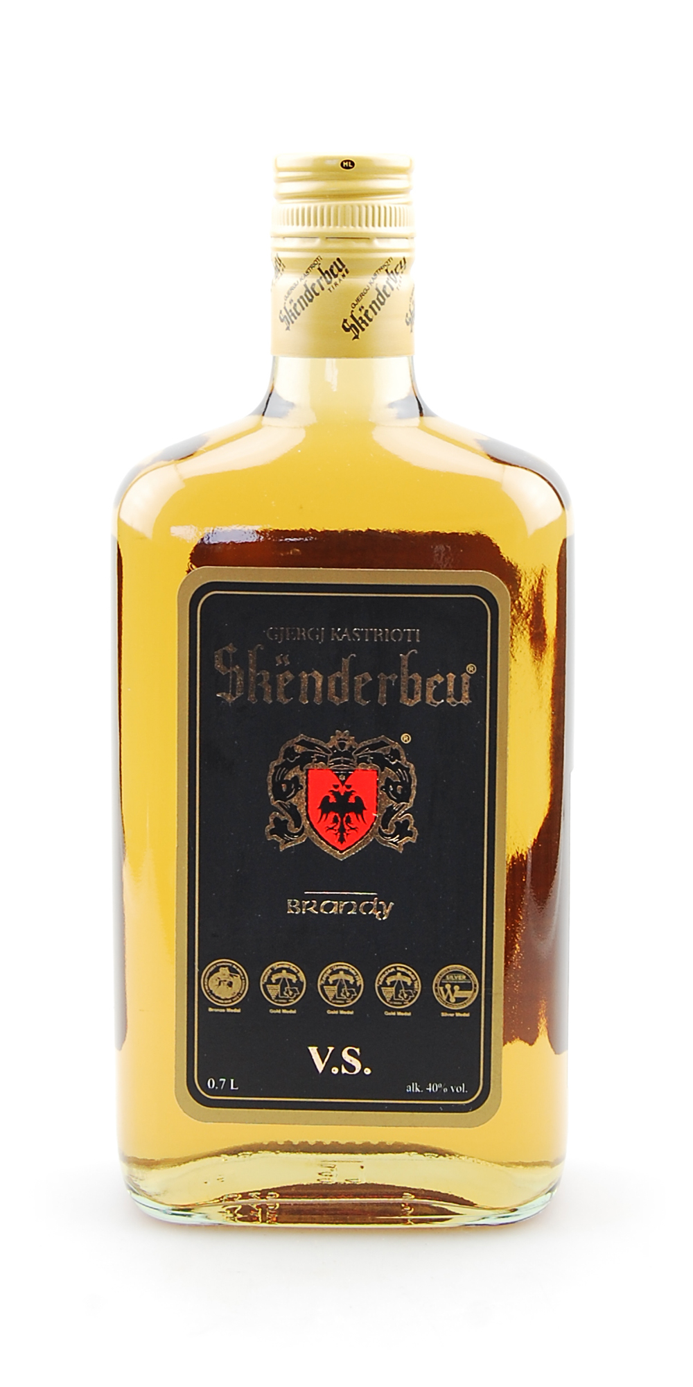 Original albanischer Skenderbeu Konjak, benannt nach dem großen albanischen Fürsten Gjergj Kastrioti, genannt Skenderbeg (alb. Skenderbeu, 1405 - 1468).