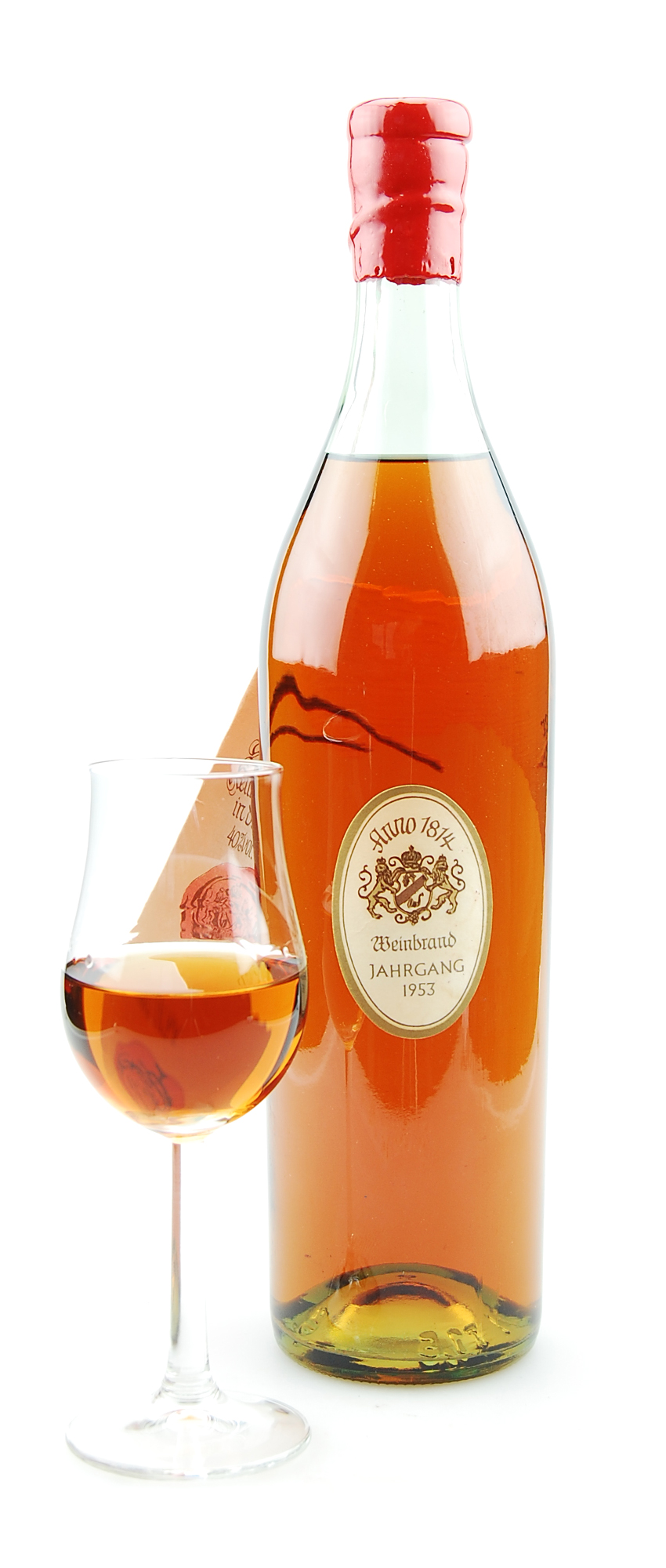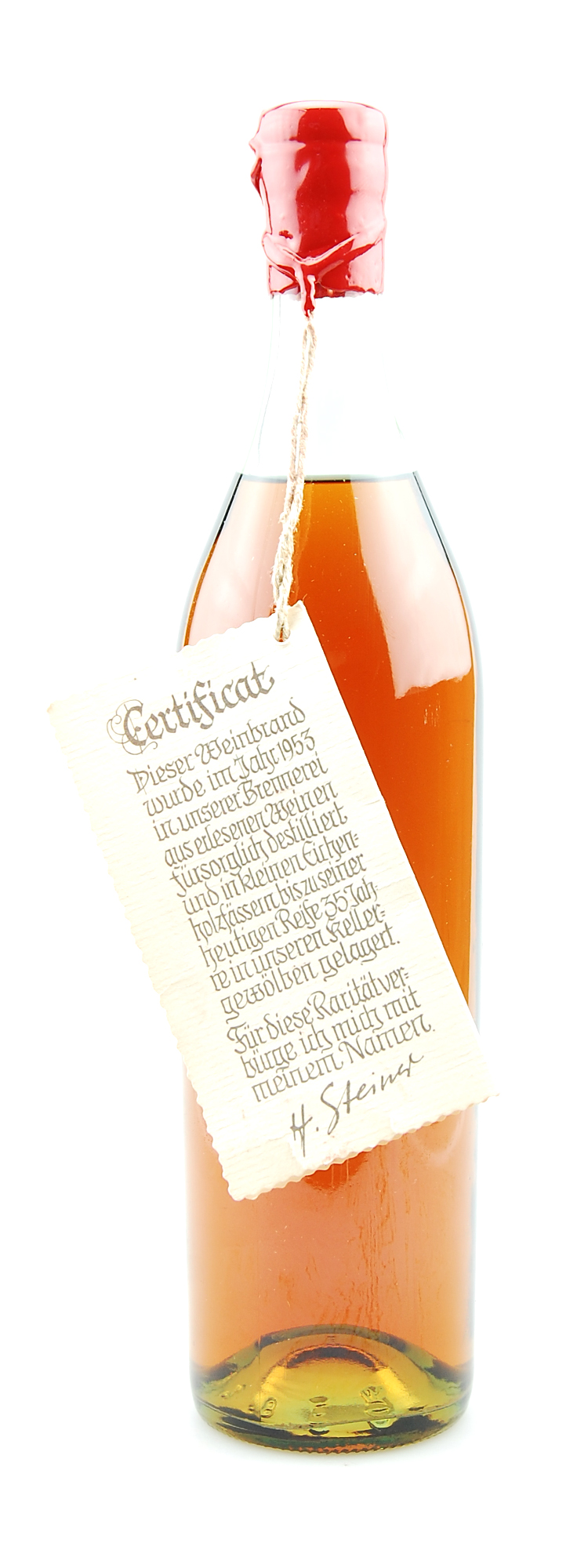 Ein großartiger 35 Jahre im Fass gelagerter Weinbrand 1953 aus der berühmten Steinerschen Kellerei zu Landau.