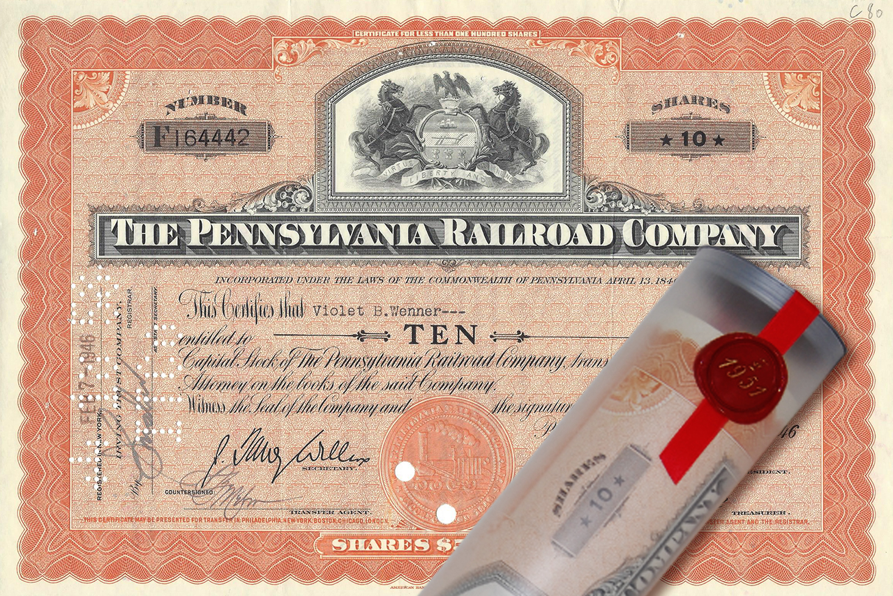 Aktie 1946 PENNSYLVANIA RAILROAD in Geschenkrolle