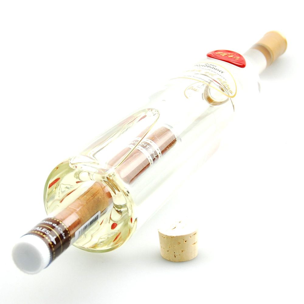Der besondere Clou dieser grandiosen Geschenkidee zum Jahrgang: Im Hohlraum dieser eleganten Geschenk-Flasche, befindet sich eine erlesene Zigarre in eleganter Tubo. Der Hohlraum dieser tollen Flasche wird mittels eines Korkens von unten geöffnet und ermöglicht ihnen somit, dieses exklusive Geschenk gegebenenfalls mit einer alternativen Wunschzigarre oder etwas ganz anderen ihrer Wahl zu befüllen.